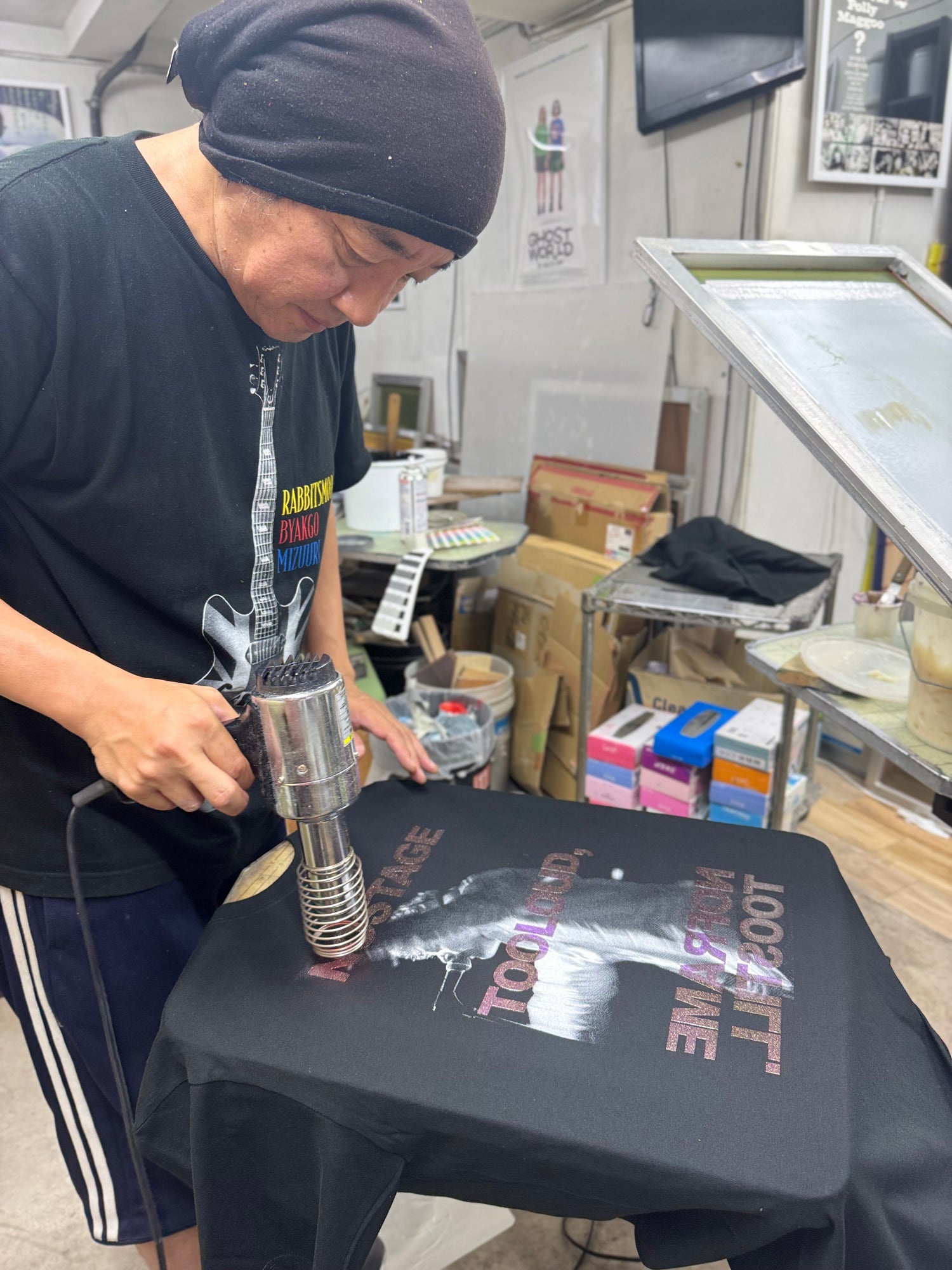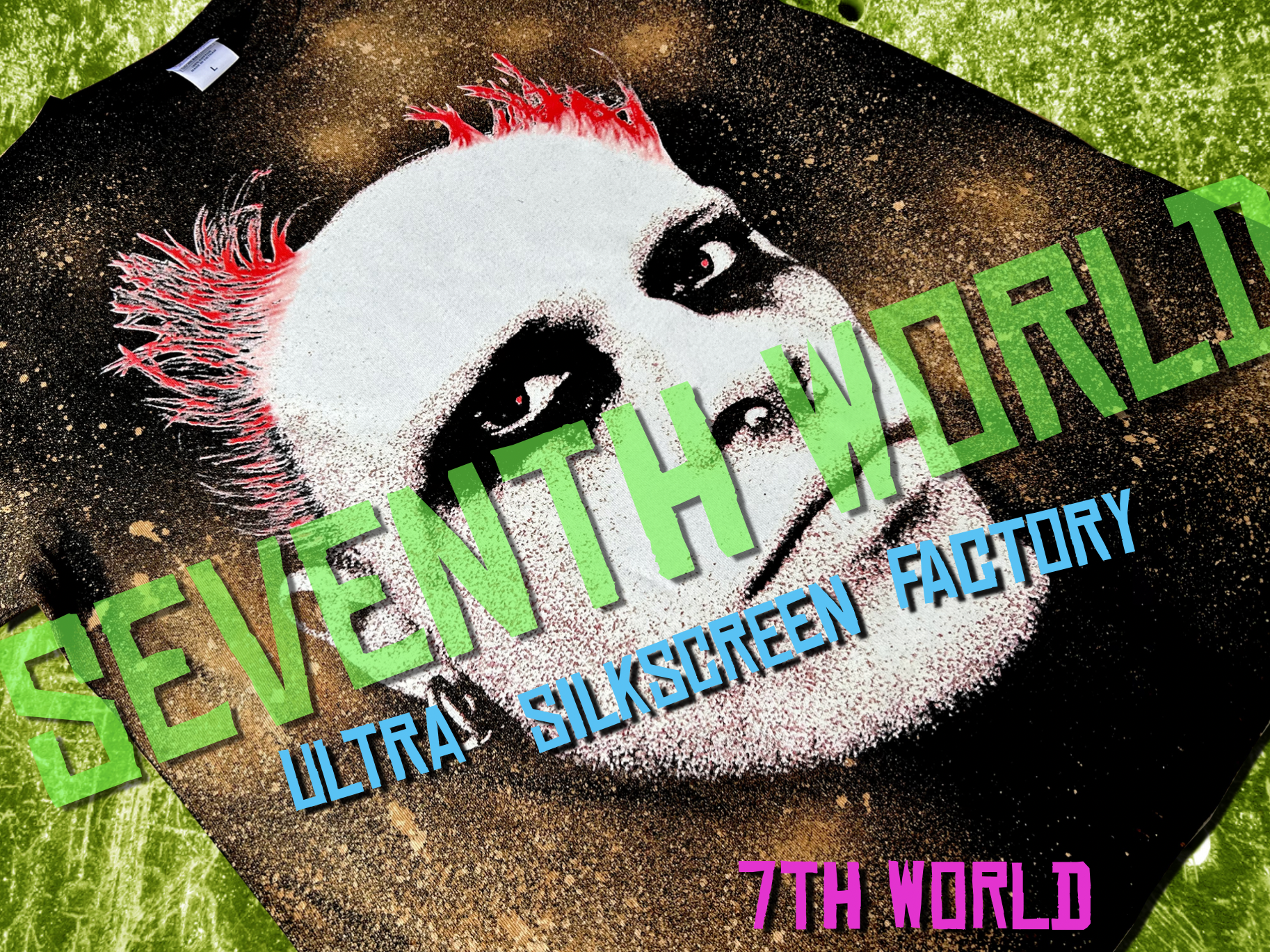 今年創立32年目を迎えるシルクスクリーンファクトリーの刷り師。Tシャツバブル期の裏原ストリートブランドをはじめ、コンサートTシャツや衣装、CM、グッズなど様々な分野で活躍中。今回、長年の経験を活かし、新たなシルクスクリーンの技を盛り込んだ第六感を超越した第七感ブランド「7th WORLD」を立ち上げた。とことん手刷りにこだわり、インクジェットや転写では出せない、シルクスクリーンの魅了が詰まったアイテムの数々はアナログの未来を感じさせるであろう。