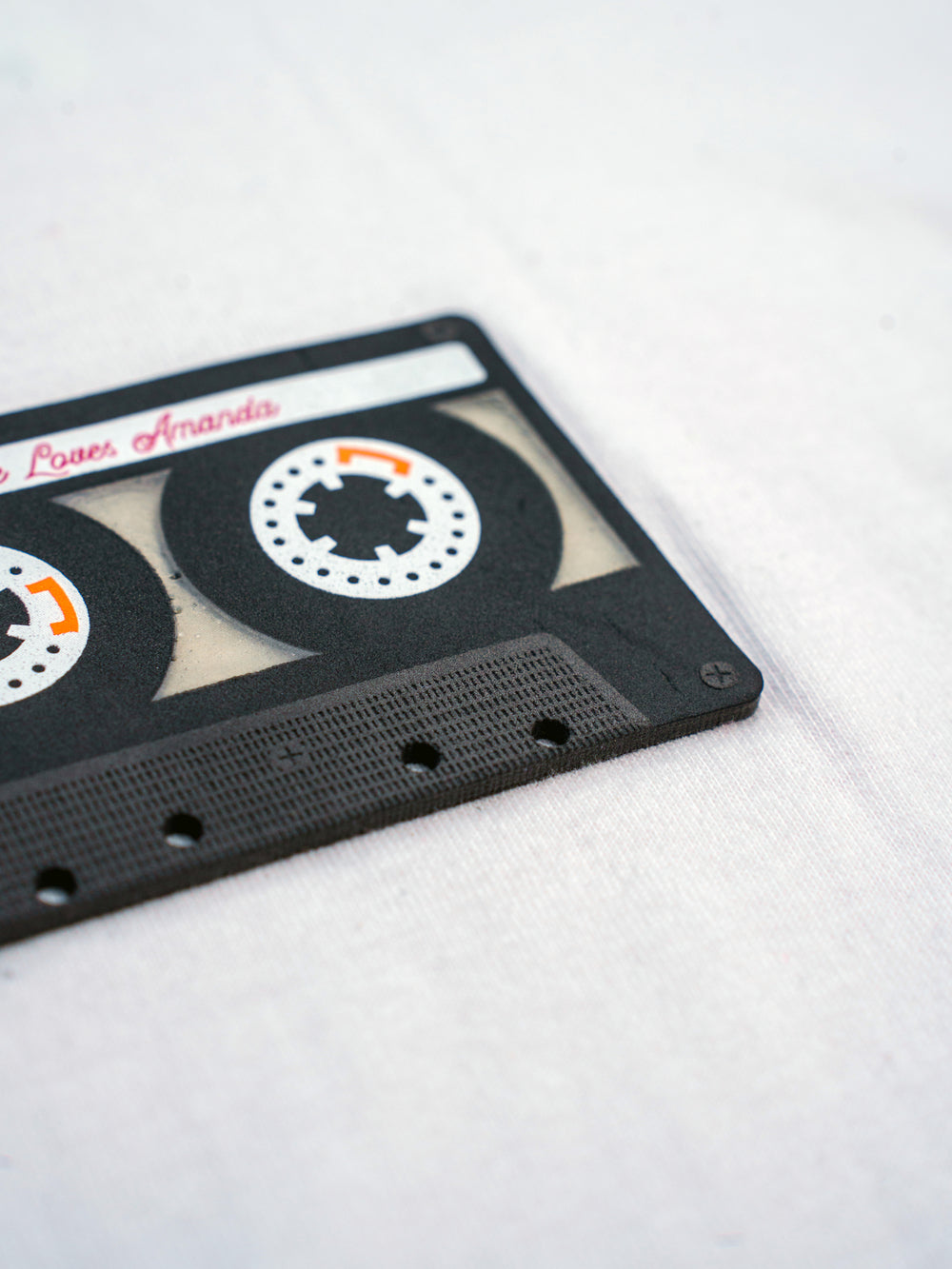 この特別なTシャツは、ヴィンテージカセットテープのアイコニックなデザインを立体的に再現しました。ソフトな肌触りと適度なストレッチ性で、快適な着心地を実現しています。カセットテープをモチーフにした個性的なプリントは、音楽好きやレトロ感のあるファッションスタイルにぴったりです。職人による手作業で制作されているため、一点一点に愛情と丁寧な仕上がりが宿っています。懐かしさと新しさが融合した、まさに時代を超越したデザインのTシャツです。